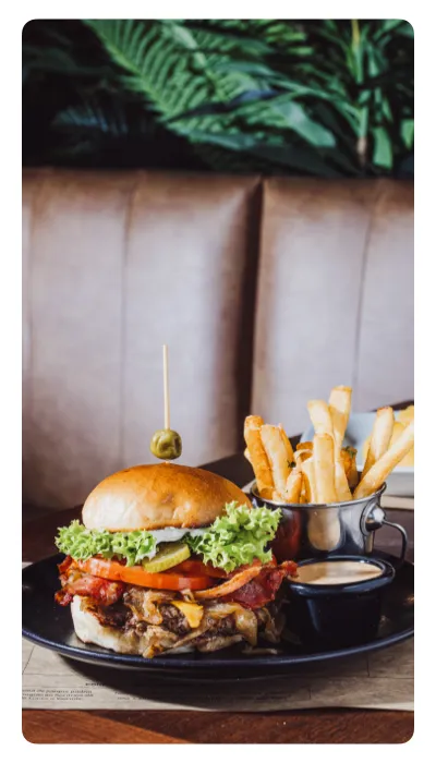 Tenemos una gran pasión por las Burgers y Sandwiches, pero nuestra propuesta abarca desde Ensaladas, Pokes hawaianos, Pastas, Platos de fondo y Appetizers variados. Nos caracterizamos por tener muchos “Clásicos” y poder disfrutar unas deliciosas frituras, cuidarte con un exquisito carpaccio de salmón o refrescarte con un fresco ceviche. Disfrutar de clásicos como pueden ser un Crudo o un Macarroni Cheese, pero también innovar con un Steak de Coliflor apto para veganos.
