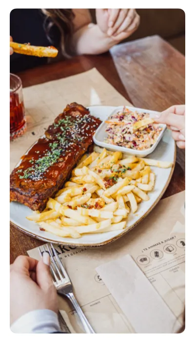Creemos que la buena comida, acompañada de uno de nuestros juegos, es el ingrediente perfecto para romper el hielo y crear momentos inolvidables.